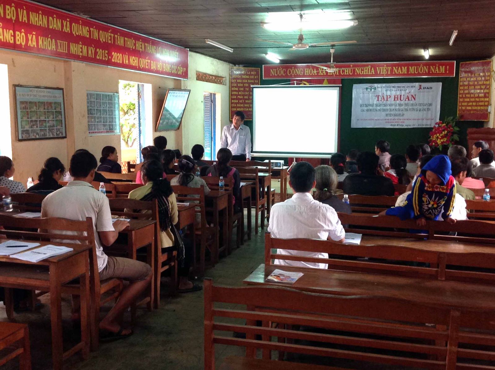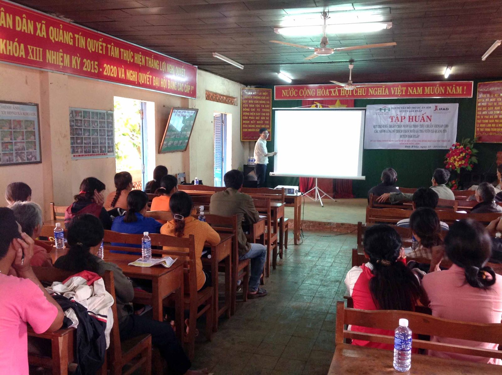 Từ ngày 21/12/2015 đến 23/12/2015, Trung tâm chất lượng Nông lâm thủy sản vùng 3 đã tổ chức khoá đào tạo “Kiến thức an toàn thực phẩm và quy trình sản xuất nông nghiệp tốt (VietGAP) trong chăn nuôi gà” cho các cán bộ và các hộ chăn nuôi gà tại Xã Quảng Tín – huyện ĐăkR’lấp – tỉnh Đăk Nông (chương trình thuộc dự án 3M – nâng cao chất lượng sản xuất cũng như đời sống cho đồng bào tại các tỉnh khó khăn)